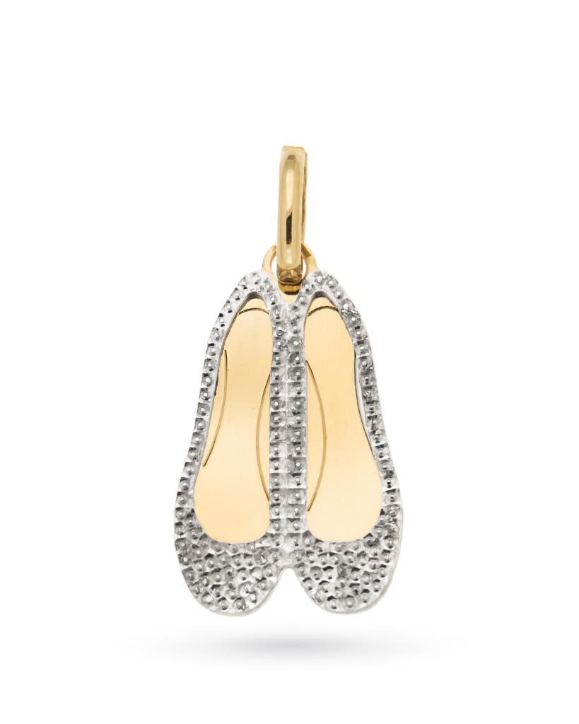 Ciondolo a forma di scarpette ballerine in oro bianco e giallo 750/000 (18kt) con superficie diamantata e nichel free.