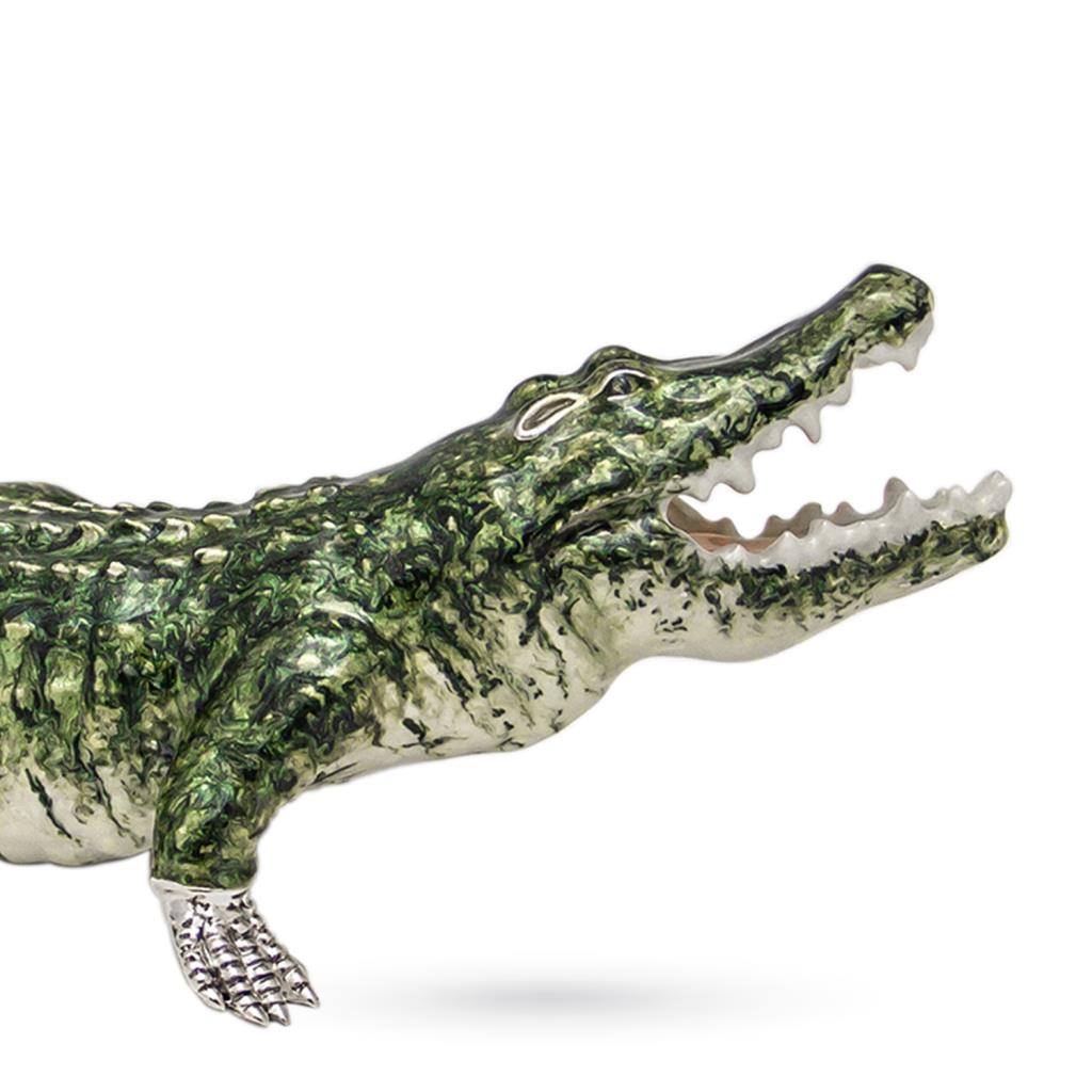Il soprammobile "Coccodrillo grande" è una creazione del Brand Saturno, eccellenza italiana del Made in Italy. Saturno realizza capolavori in miniatura e artigianali in argento tutti diversi tra loro grazie alle sfumature delle smaltature applicate a mano: non esisteranno mai due Soprammobile uguali tra loro. Questi Soprammobile in argento sono l'ideale per i collezionisti di oggetti esclusivi e per chi ama arredare la propria casa o il proprio ufficio con elementi d'arredo ricercati e preziosi.