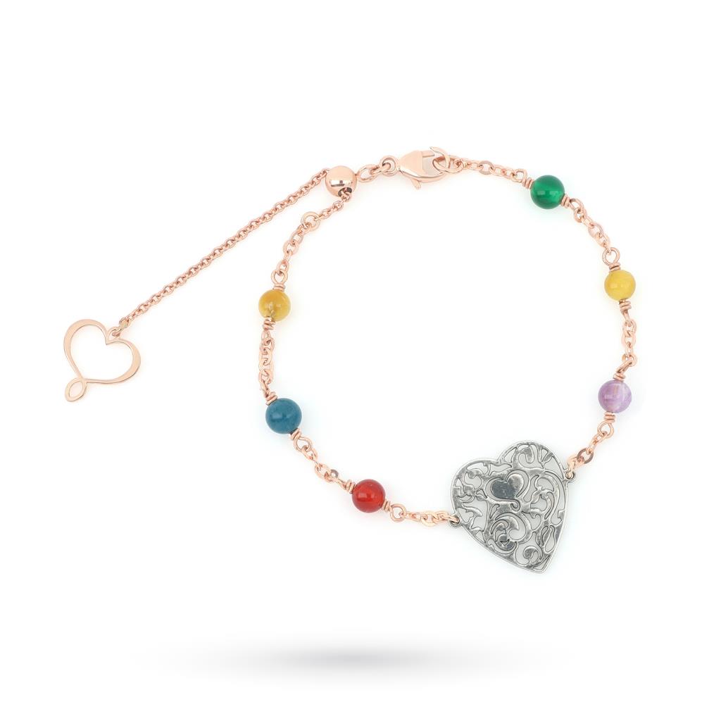 Il gioiello che stai osservando è una collana della marca Maman et Sophie con catena in agento 925 con galvanica in oro rosa e pietre colorate.