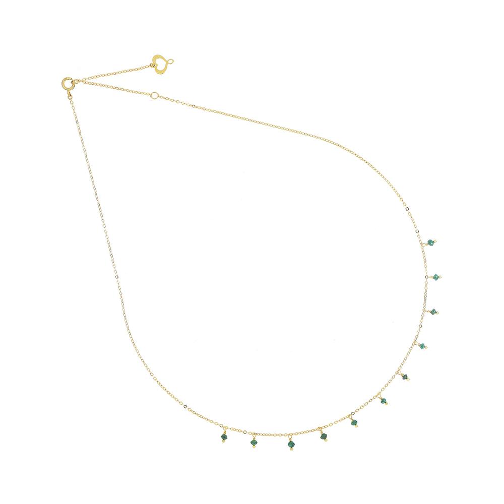 Al centro della collana risplende un'acquamarina ovale da 0,39 carati, una gemma preziosa che cattura la luce con il suo colore azzurro intenso e trasparente, inebriando lo sguardo con la sua purezza. Tre diamanti con taglio rotondo a brillante da 0,02 carati complessivi impreziosiscono la parte superiore della collana, aggiungendo un pizzico di scintillio e completando il design con discreta raffinatezza.