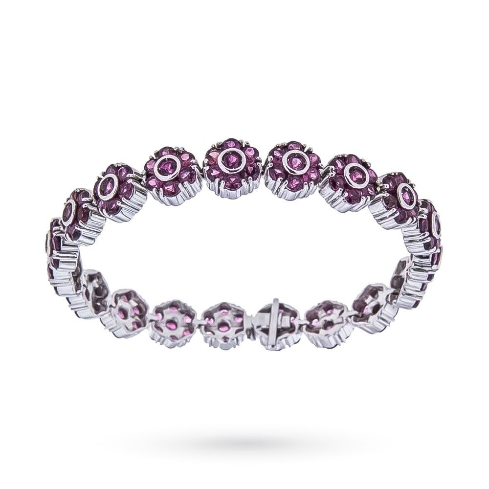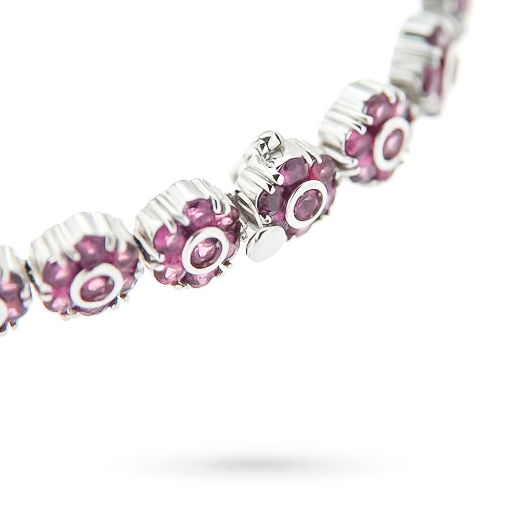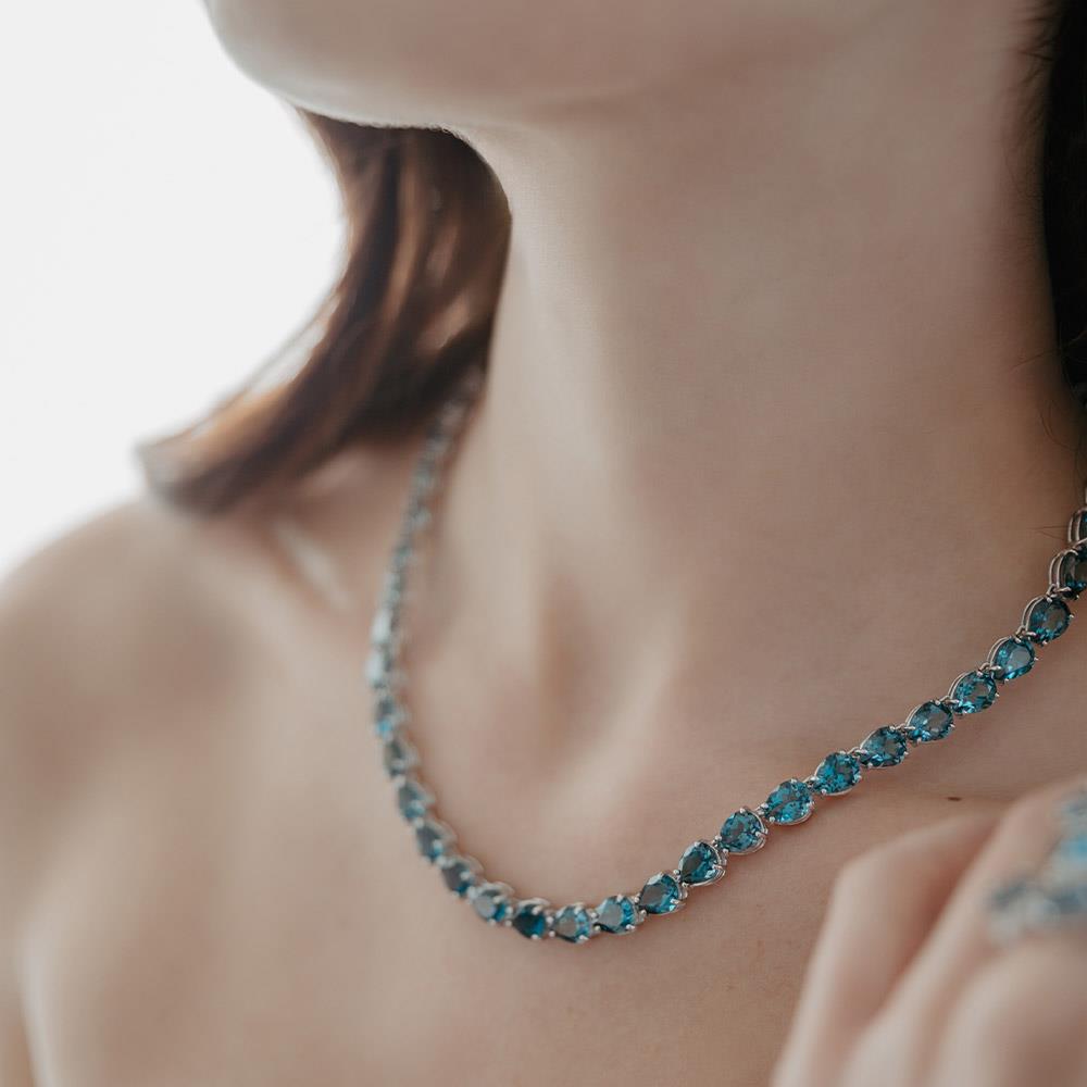 Realizzata in oro bianco 18kt anallergico e nickel free, questa collana è lunga 40 cm e dispone di una chiusura a moschettone pratica e sicura. Un dettaglio esclusivo è dato dalle punte dei castoni rodiate nere, che esaltano ulteriormente il colore delle gemme, aggiungendo un tocco di raffinatezza.