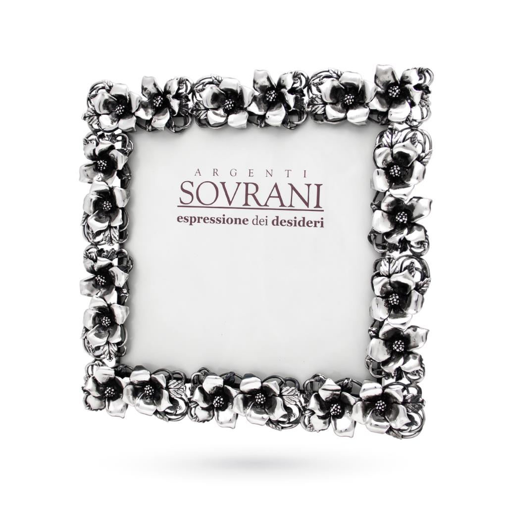 Cornice portafoto argento 18x18 cm fiori ibisco
