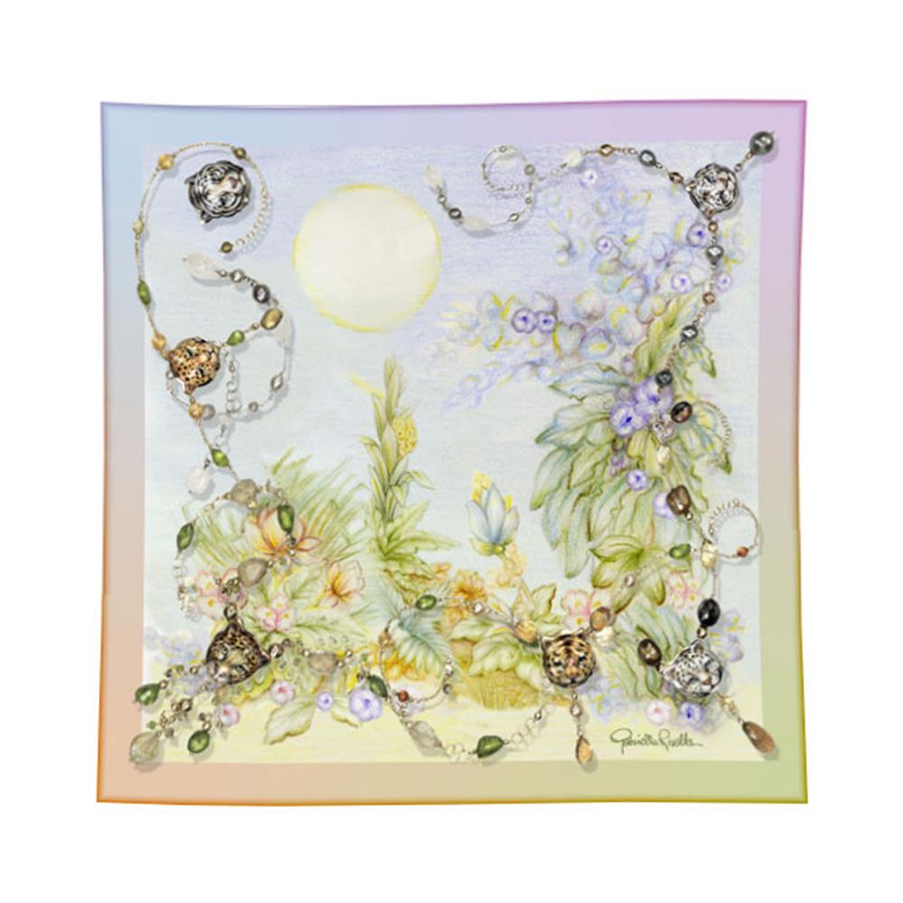 Foulard 100% seta Gabriella Rivalta Giungla 50x50cm. L’ estetica esotica ed animale della Giungla ha affascinato intere generazioni attraverso tutti i medium possibili, dalla letteratura alla moda al cinema. Il Foulard “Giungla” richiama proprio quell’estetica, interpretandola in chiave Rivalta: la stampa ripropone i più bei pendenti animalier mescolati a piante e fiori in una Giungla gentile ed armonica. Il Foulard Giungla è realizzato su disegno di Gabriella Rivalta; 100% pura seta; pensato, creato e realizzato totalmente in Italia; nella sua versione più piccola misura 50x50cm