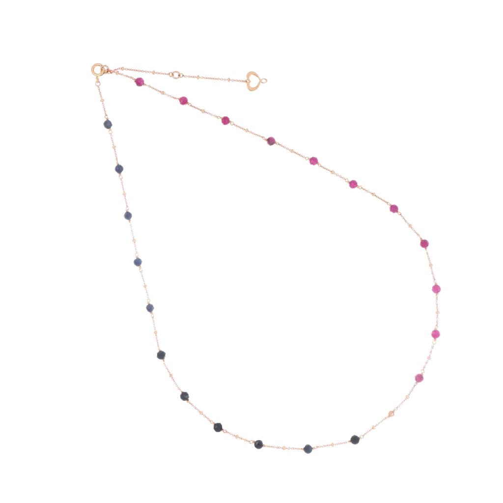 Girocollo realizzato in oro rosa 18 carati e pietre dui Rubini e Zaffiri.