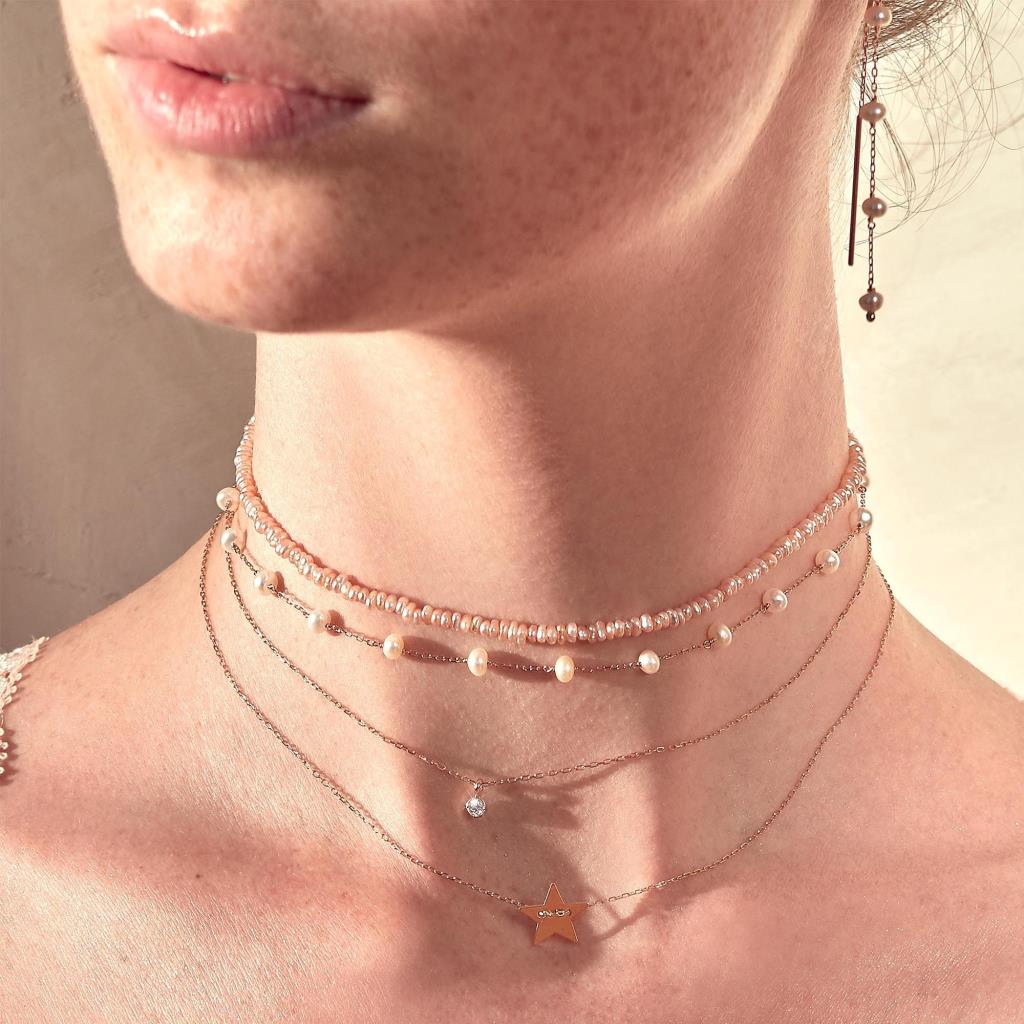 Il girocollo può essere regolato in tre misure: 36,5 cm, 38 cm e 43 cm con agganciatura al cuore Maman traforato.