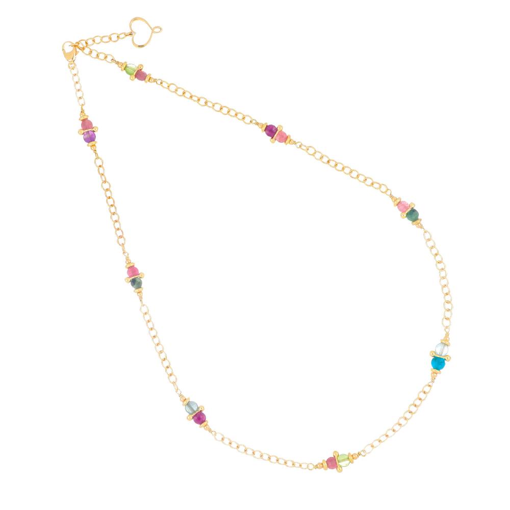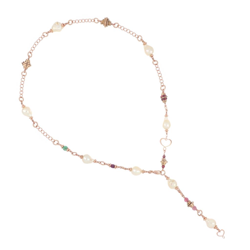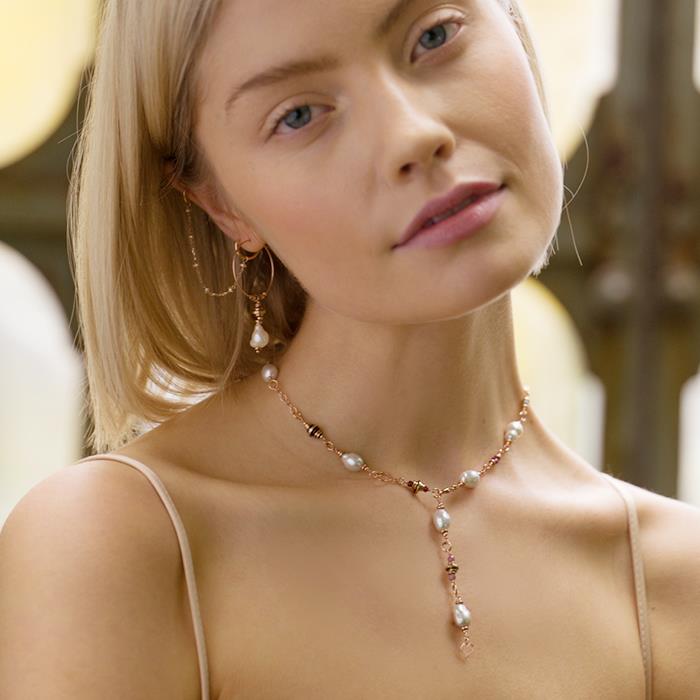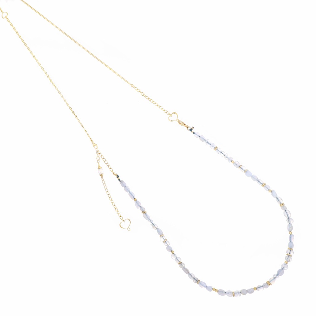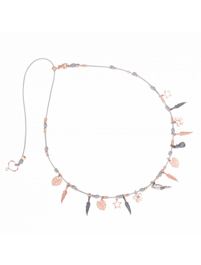 Girocollo di filo di nylon beige realizzato in argento 925 con sfere mondi di varie dimensioni.