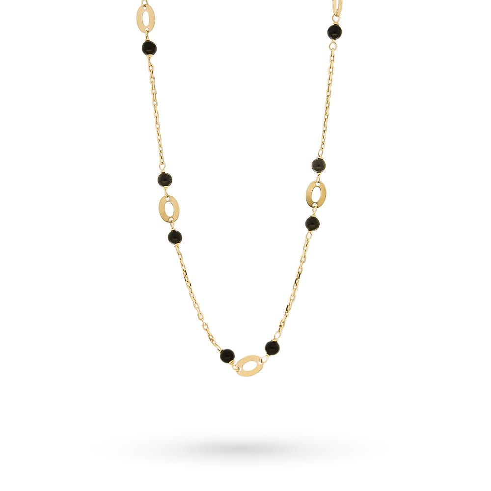 Girocollo catenina ovalini oro giallo sfere onice 42cm.