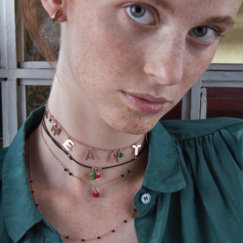 Collana girocollo di catena realizzata in argento 925 placcato in oro rosa ad alto spessore ed alta resistenza. La coccinella smaltata misura 9 mm. Sono presenti quattro pietre di spinello. La circonferenza della collana è regolabile grazie alla piccola sfera, arriva ad un massimo di 34 cm. Chiusura a moschettone.
