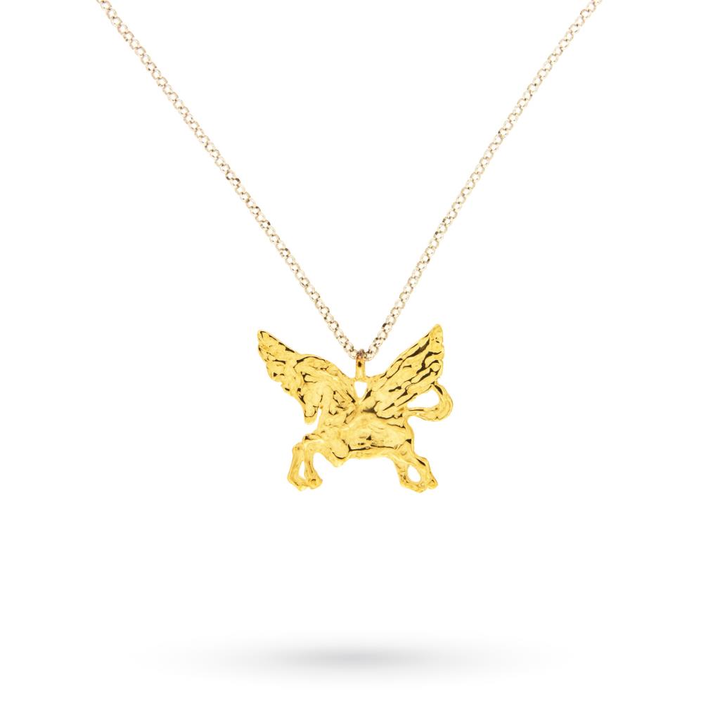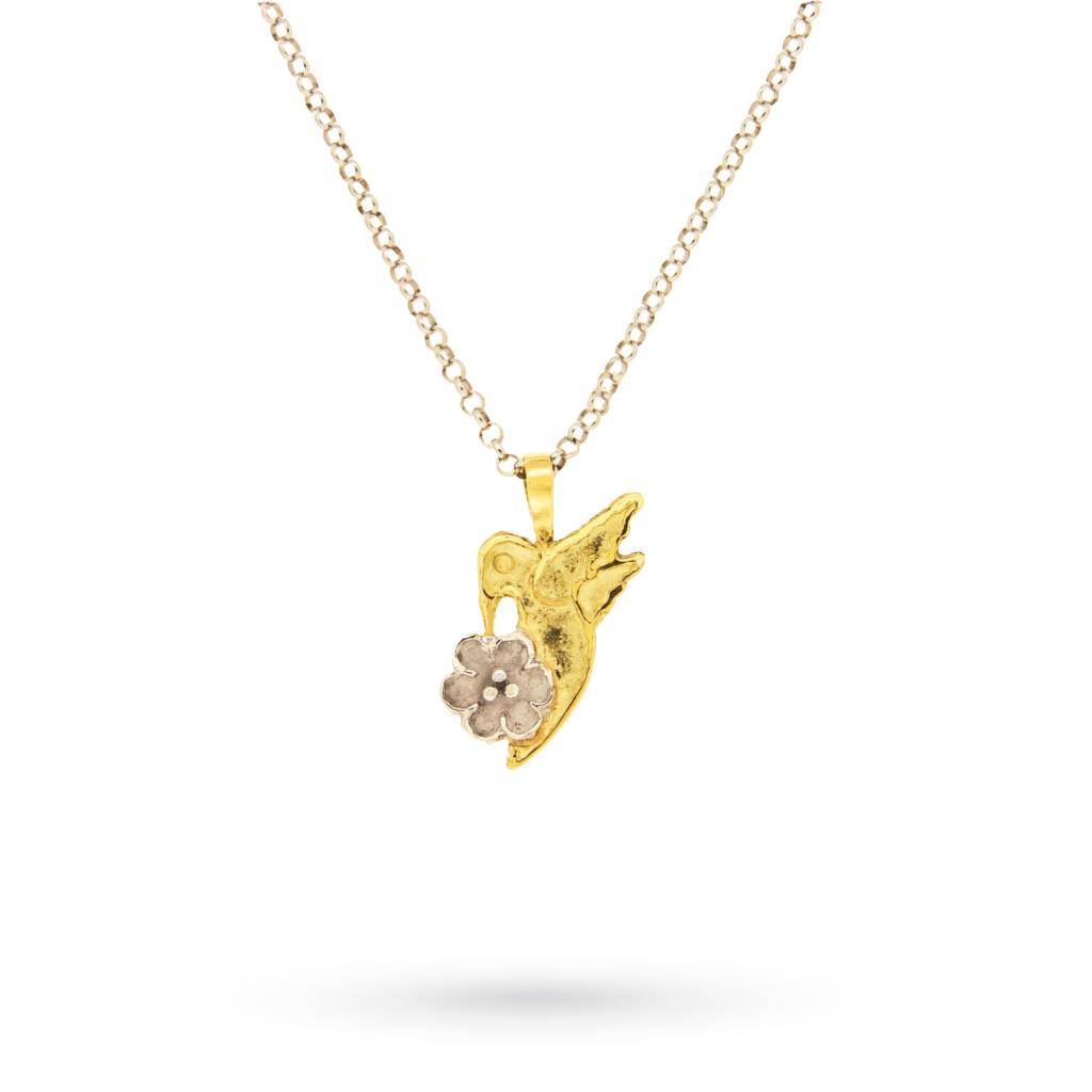 E' presente un ciondolo in oro giallo e bianco a forma di margherita con elemento quadrato sopra.
