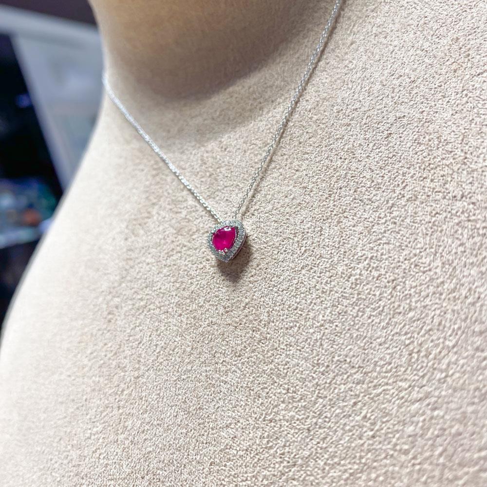 Girocollo rubino cuore 0,50ct contorno diamanti 0,10 ct.