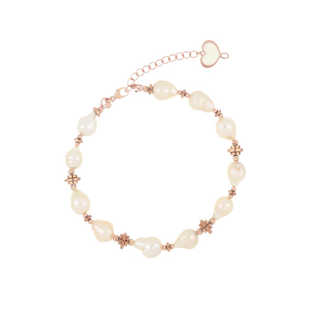 Girocollo realizzato in argento 925 con galvanica oro rosa ad alto spessore e resistenza con Perle naturali irregolari d'acqua dolce.