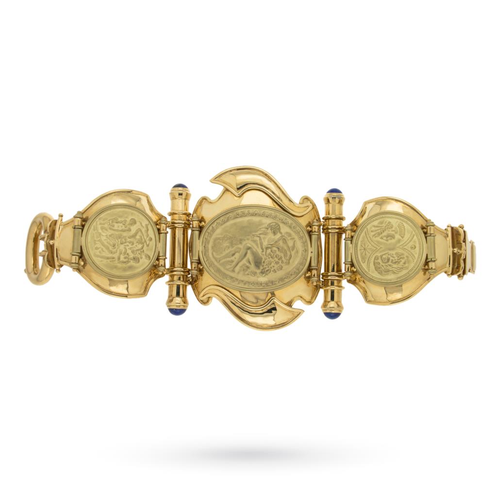 Straordinario bracciale in oro giallo con medaglioni e lapislazzuli – Un capolavoro unico