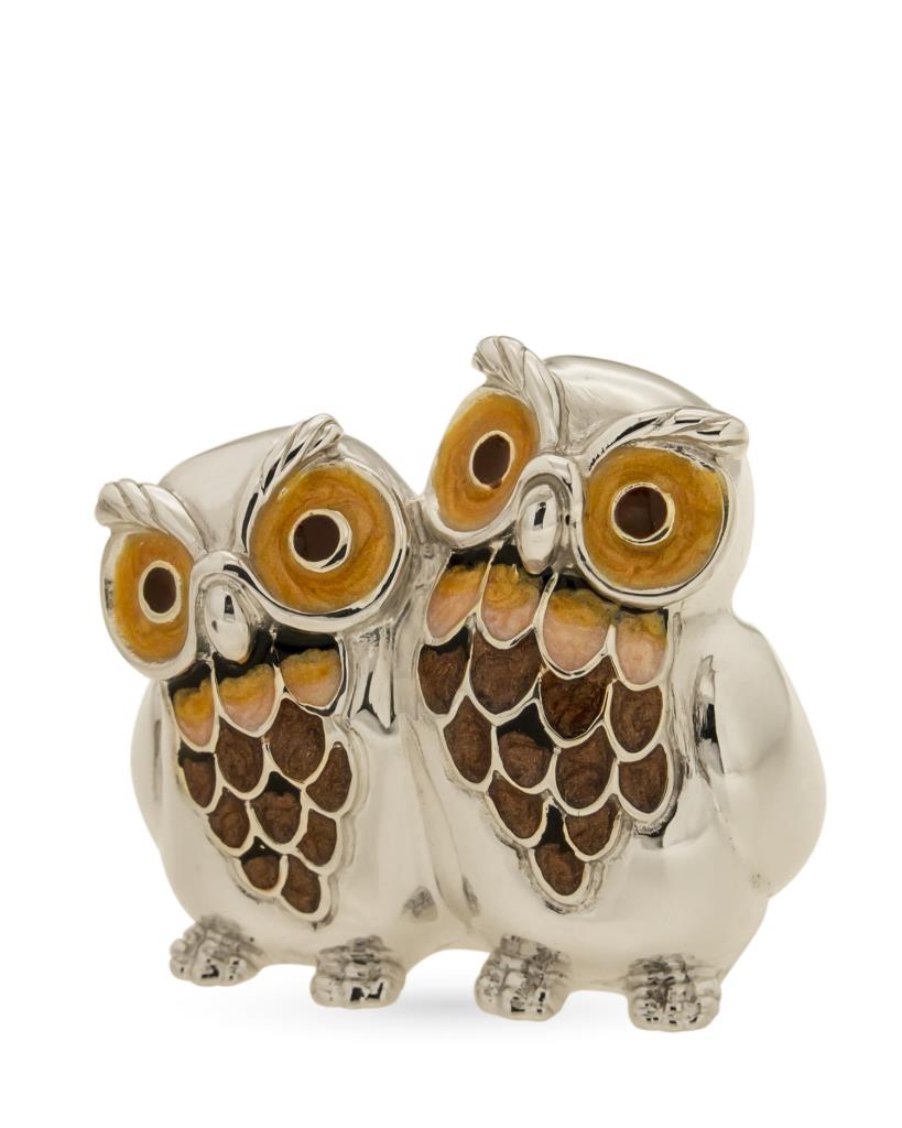 Il soprammobile "Coppia di gufi" è una creazione del Brand Saturno, eccellenza italiana del Made in Italy. Saturno realizza piccoli capolavori artigianali in argento tutti diversi tra loro grazie alle sfumature delle smaltature applicate a mano: non esisteranno mai due Soprammobile uguali tra loro. Questi Soprammobile in argento sono l'ideale per i collezionisti di oggetti esclusivi e per chi ama arredare la propria casa o il proprio ufficio con elementi d'arredo ricercati e preziosi.