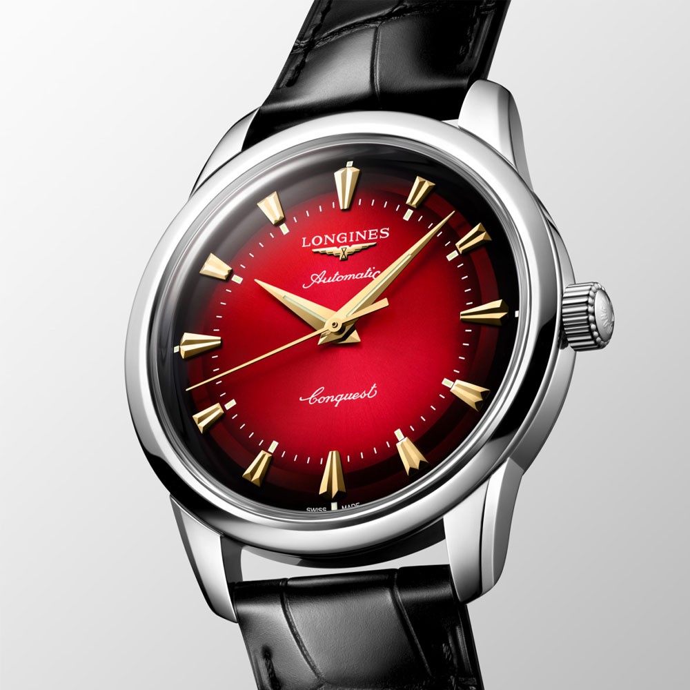 Questo straordinario orologio da 40mm rappresenta un connubio perfetto tra design sofisticato, arte e tradizione. Il quadrante rosso sfumato, circondato da una cassa rotonda in acciaio e protetto da un vetro zaffiro bombato, cattura immediatamente lo sguardo. Gli indici e le lancette dorati applicati aggiungono un tocco di eleganza e raffinatezza, rendendolo un segnatempo unico.