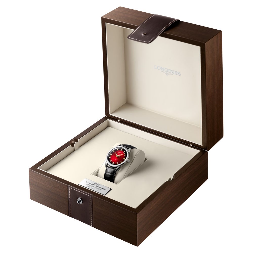 Il serpente inciso sul fondello è una figura mistica che tiene in bocca il Lingzhi, un’erba leggendaria simbolo di immortalità. Il corpo del serpente, avvolto in cerchi concentrici, rappresenta la salute e la prosperità che si propagano come onde. La testa del serpente e il Lingzhi formano un motivo simmetrico, simile a un ciondolo di giada portafortuna, rendendo questo orologio una sorta di “moderno ciondolo di giada” che riflette il carattere di chi lo indossa.