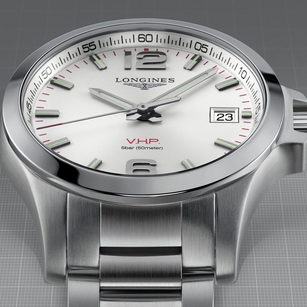L'orologio Longines Conquest L3.716.4.76.6 monta un movimento ultrapreciso al quarzo, da cui prende appunto il nome. VHP significa Very High Precision, ed attesta l'assoluta affidabilità del segnatempo. Questa versione è realizzata in acciaio inossidabile con quadrante argento. La dimensione di cassa 41mm lo rende un orologio perfetto per tutte le grandezze di polso.
