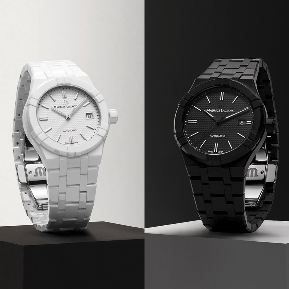 Orologio della collezione AIKON Automatic Date 42mm, cassa in ceramica nera, quadrante nero con motivo Clous de Paris, bracciale in ceramica nera. Cicala è rivenditore ufficiale online per gli orologi Maurice Lacroix. Quest'orologio è nuovo e viene consegnato con scatola e garanzia. Spedizione assicurata. Referenza Maurice Lacroix AI6008-CRM22-330-2.