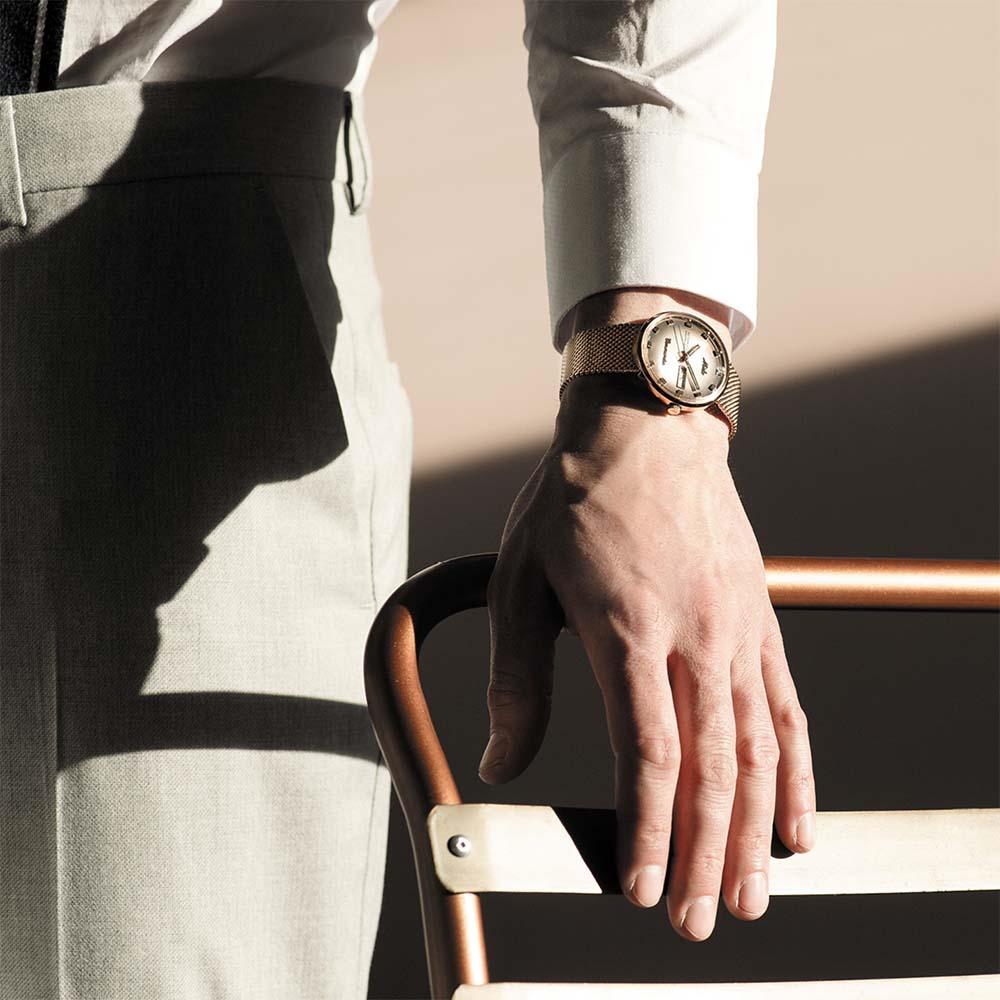 L'orologio è dotato di un cinturino in Acciaio inossidabile, che completa perfettamente il design complessivo, offrendo comfort e stile ineguagliabile. Inoltre, l'impermeabilità fino a Impermeabile fino a 5 bar garantisce che l'orologio sia pronto a resistere a tutte le sfide della vita quotidiana.