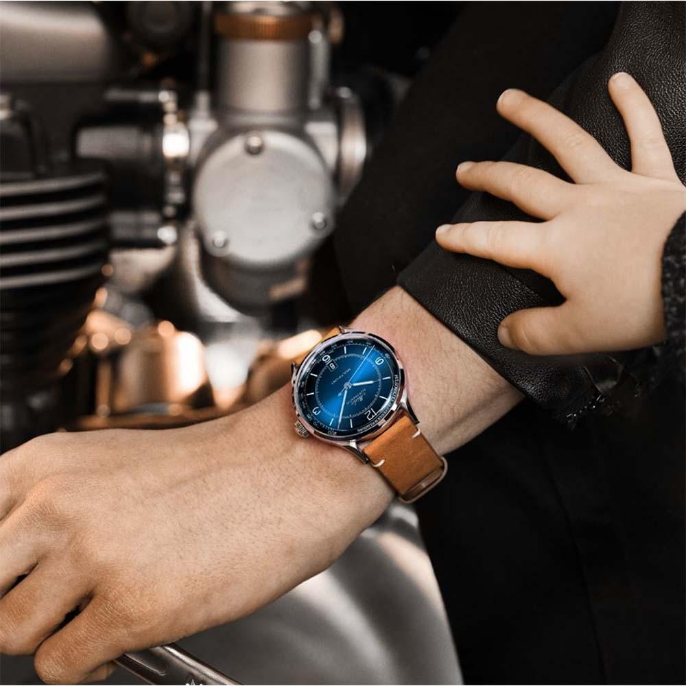 L'orologio è dotato di un cinturino in Pelle, che completa perfettamente il design complessivo, offrendo comfort e stile ineguagliabile. Inoltre, l'impermeabilità fino a Impermeabile fino a 5 bar garantisce che l'orologio sia pronto a resistere a tutte le sfide della vita quotidiana.
