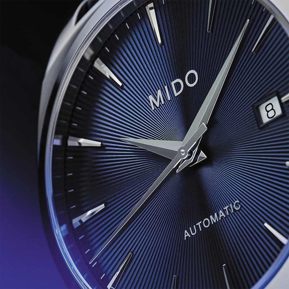 Il movimento Automatico mido calibro 80 (base eta c07.611), con una riserva di carica di Riserva di carica pari a 80 ore, assicura precisione e affidabilità, rendendolo un orologio ideale per un uso quotidiano o per occasioni speciali. La cassa, realizzata in Acciaio inossidabile, con un diametro di Ø 41.30 mm, offre una presenza robusta e sofisticata al polso. Il quadrante di colore Blu, protetto da un vetro Vetro zaffiro antigraffio con trattamento antiriflesso multistrato su entrambi i lati, non solo aggiunge un tocco di classe ma garantisce anche una resistenza ottimale contro i graffi.