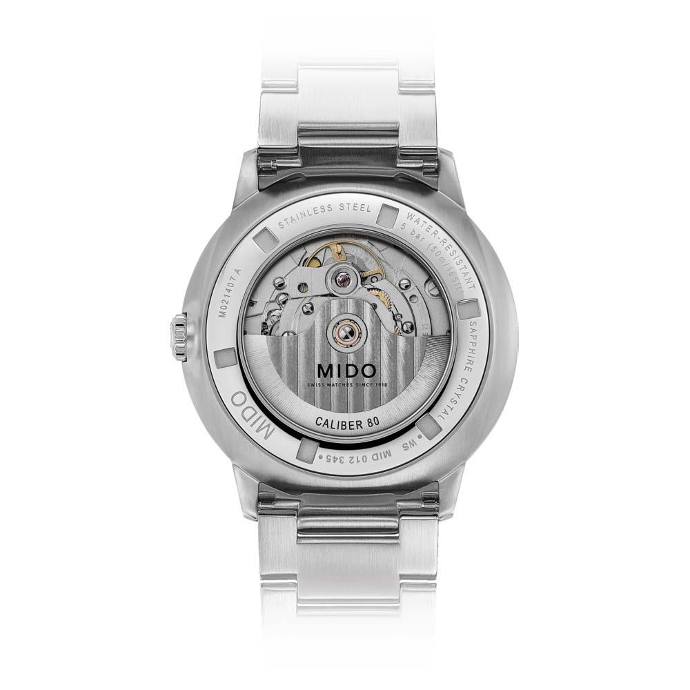Il movimento Automatico mido calibro 80 (base eta c07.611), con una riserva di carica di Riserva di carica pari a 80 ore, assicura precisione e affidabilità, rendendolo un orologio ideale per un uso quotidiano o per occasioni speciali. La cassa, realizzata in Acciaio inossidabile, con un diametro di Ø 40.00 mm, offre una presenza robusta e sofisticata al polso. Il quadrante di colore Blu, protetto da un vetro Vetro zaffiro antigraffio, non solo aggiunge un tocco di classe ma garantisce anche una resistenza ottimale contro i graffi.