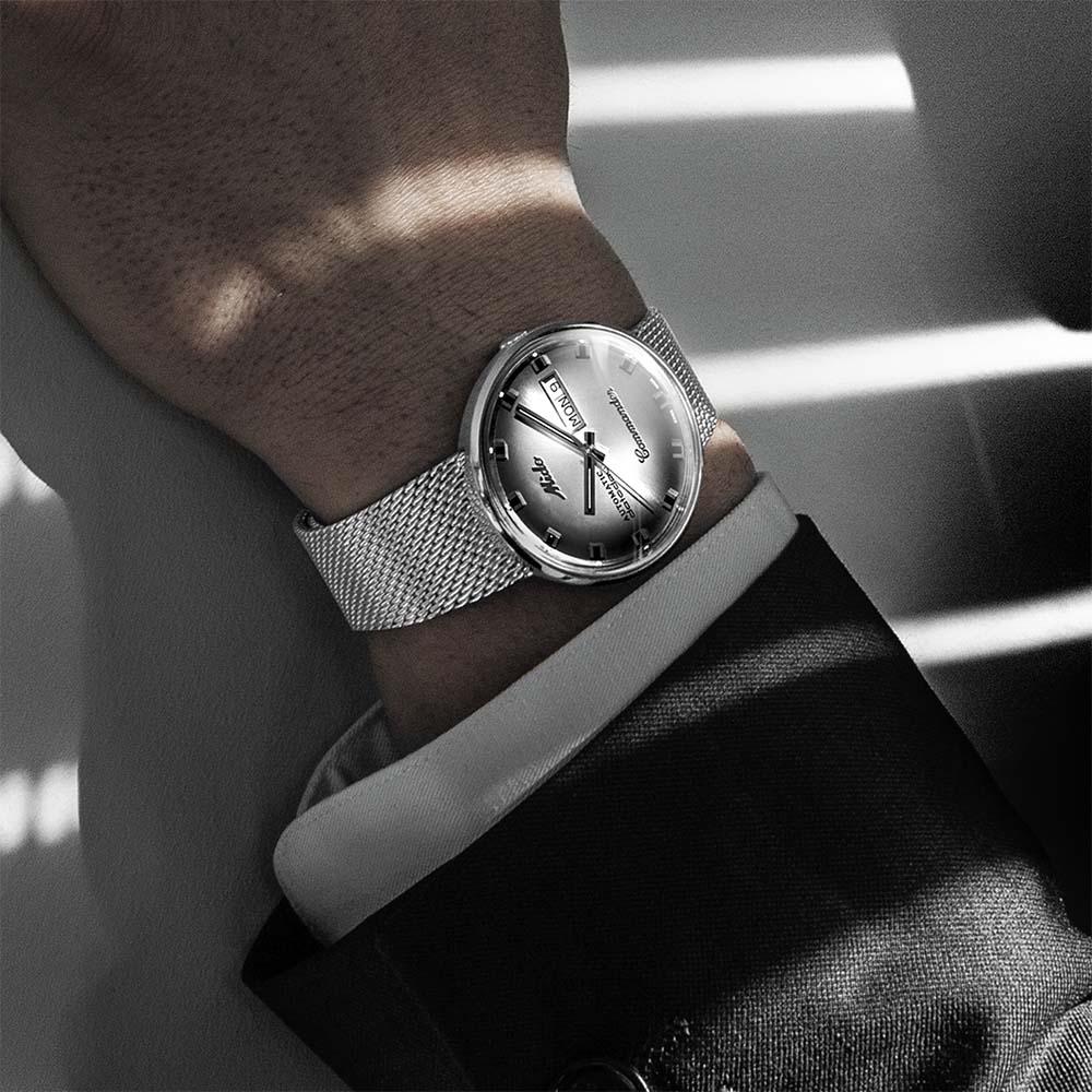 L'orologio è dotato di un cinturino in Acciaio inossidabile, che completa perfettamente il design complessivo, offrendo comfort e stile ineguagliabile. Inoltre, l'impermeabilità fino a Impermeabile fino a 5 bar garantisce che l'orologio sia pronto a resistere a tutte le sfide della vita quotidiana.