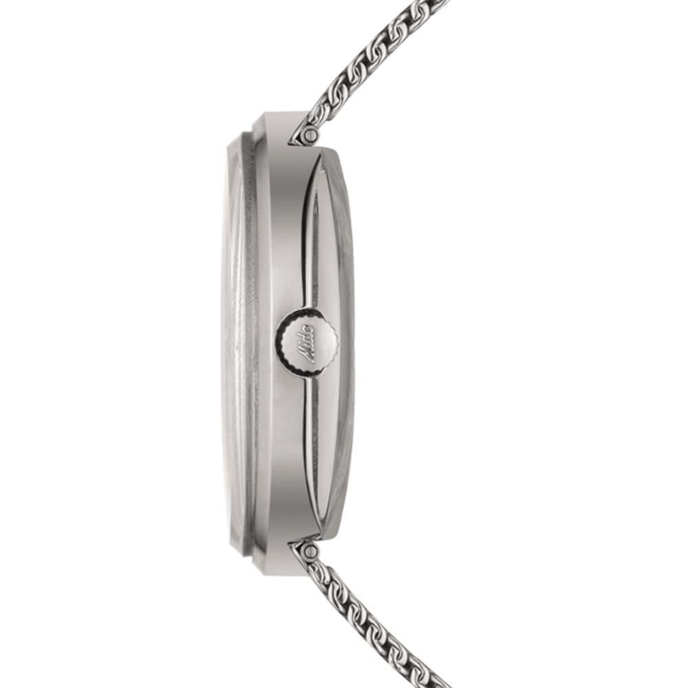 Il movimento Automatico mido calibro 80 (base eta c07.621), con una riserva di carica di Riserva di carica pari a 80 ore, assicura precisione e affidabilità, rendendolo un orologio ideale per un uso quotidiano o per occasioni speciali. La cassa, realizzata in Acciaio inossidabile, con un diametro di Ø 37.00 mm, offre una presenza robusta e sofisticata al polso. Il quadrante di colore Argento, protetto da un vetro Vetro acrilico, non solo aggiunge un tocco di classe ma garantisce anche una resistenza ottimale contro i graffi.