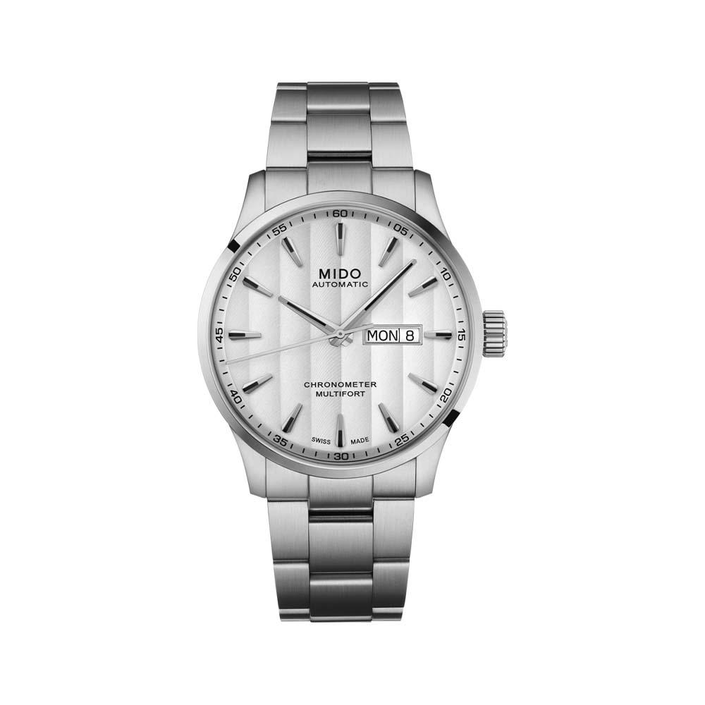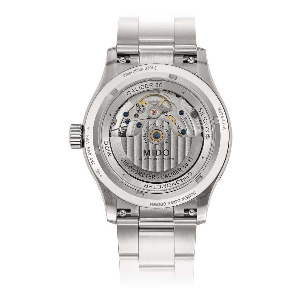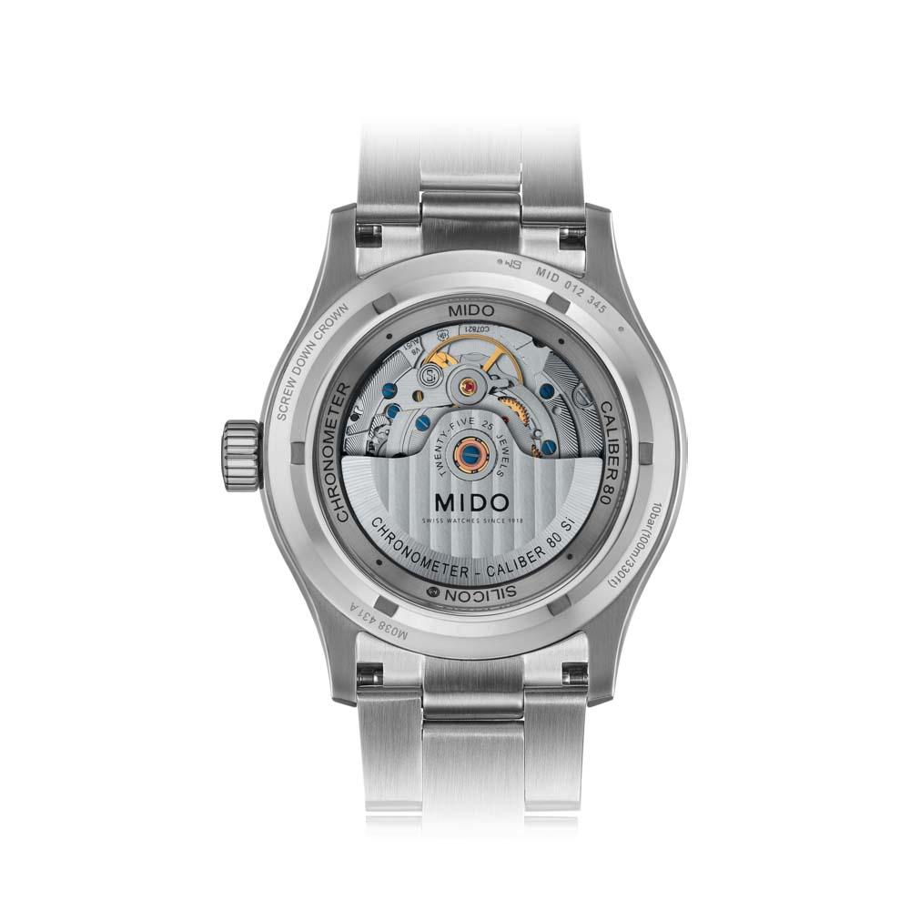 Il movimento Automatico mido calibro 80 (base eta c07.821) cosc, con una riserva di carica di Riserva di carica pari a 80 ore, assicura precisione e affidabilità , rendendolo un orologio ideale per un uso quotidiano o per occasioni speciali. La cassa, realizzata in Acciaio inossidabile, con un diametro di Ø 42.00 mm, offre una presenza robusta e sofisticata al polso. Il quadrante di colore Bianco, protetto da un vetro Vetro zaffiro antigraffio con trattamento antiriflesso multistrato su entrambi i lati, non solo aggiunge un tocco di classe ma garantisce anche una resistenza ottimale contro i graffi.