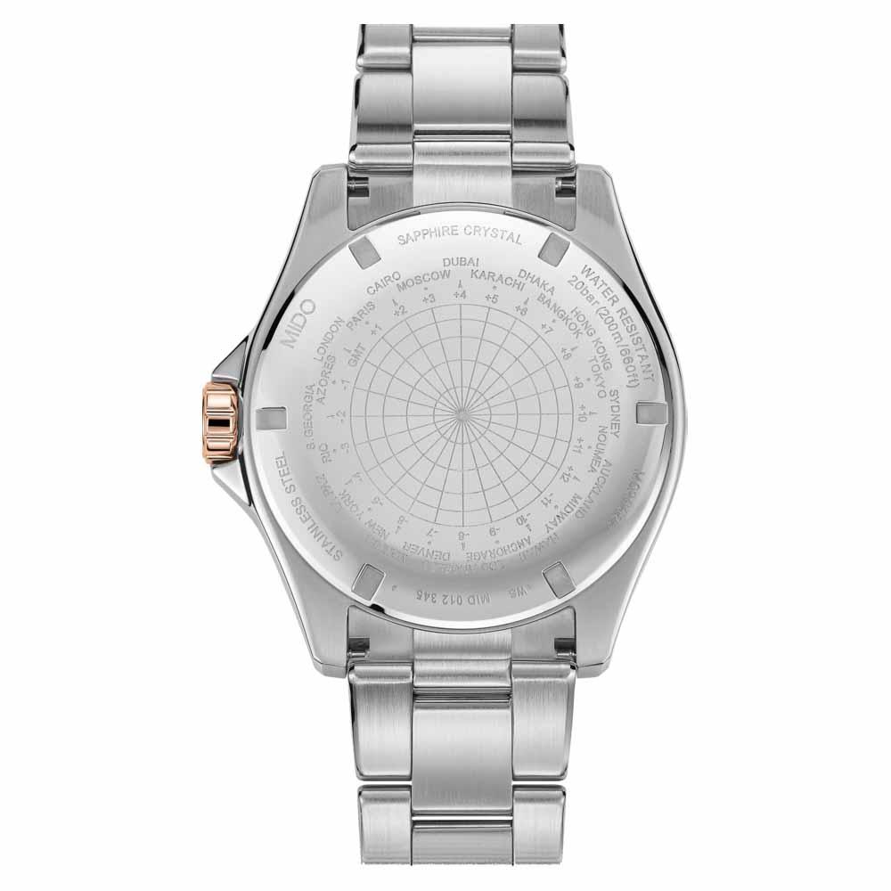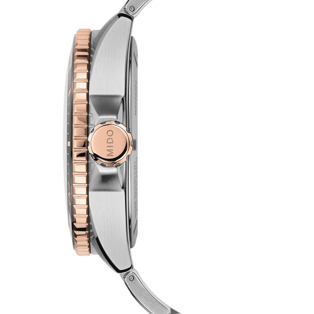 Il movimento Automatico mido calibro 80 (base eta c07.661), con una riserva di carica di Riserva di carica pari a 80 ore, assicura precisione e affidabilità , rendendolo un orologio ideale per un uso quotidiano o per occasioni speciali. La cassa, realizzata in Acciaio / rivestimento oro 200 and ceramic bezel, con un diametro di Ø 44.00 mm, offre una presenza robusta e sofisticata al polso. Il quadrante di colore Nero, protetto da un vetro Vetro zaffiro antigraffio con trattamento antiriflesso multistrato su entrambi i lati, non solo aggiunge un tocco di classe ma garantisce anche una resistenza ottimale contro i graffi.
