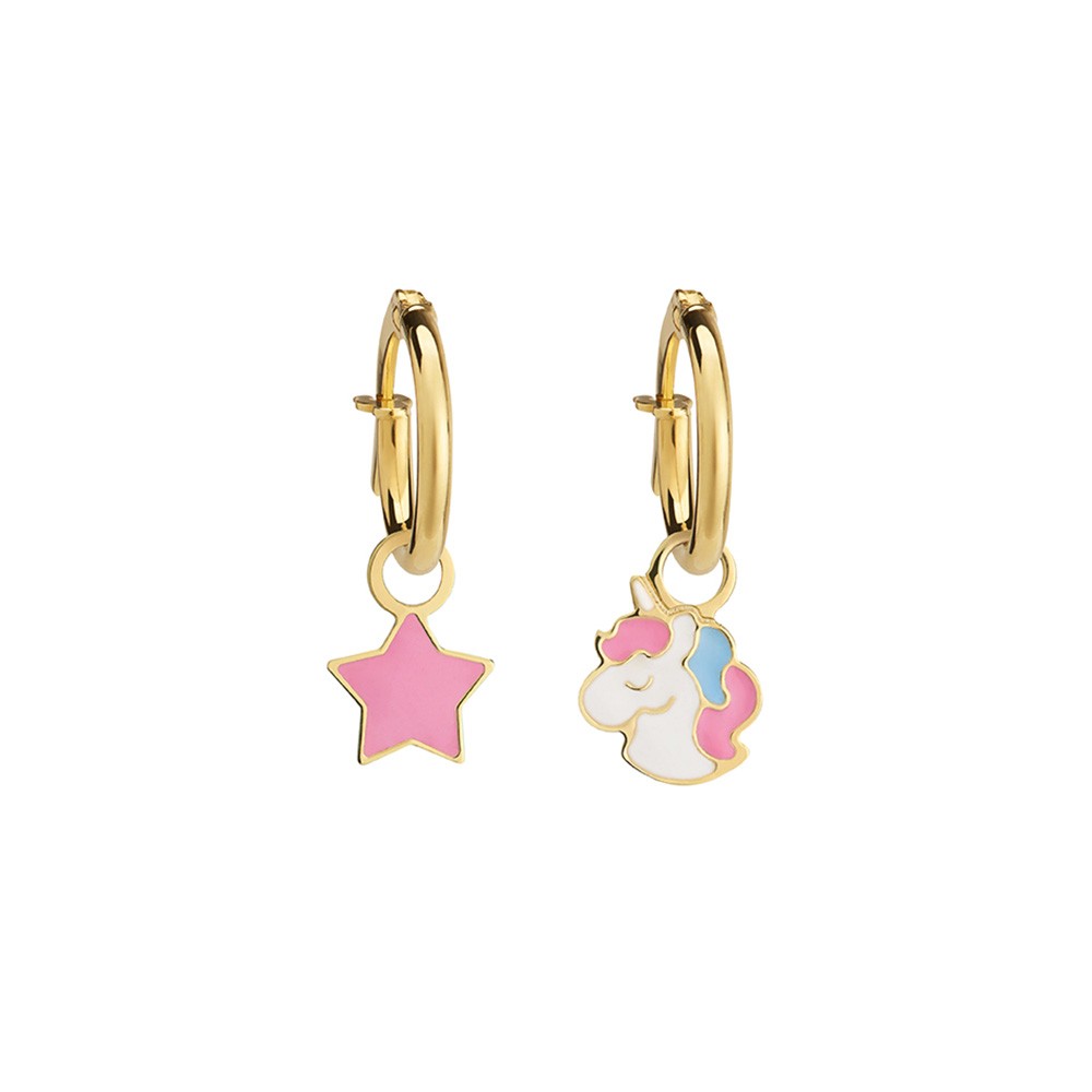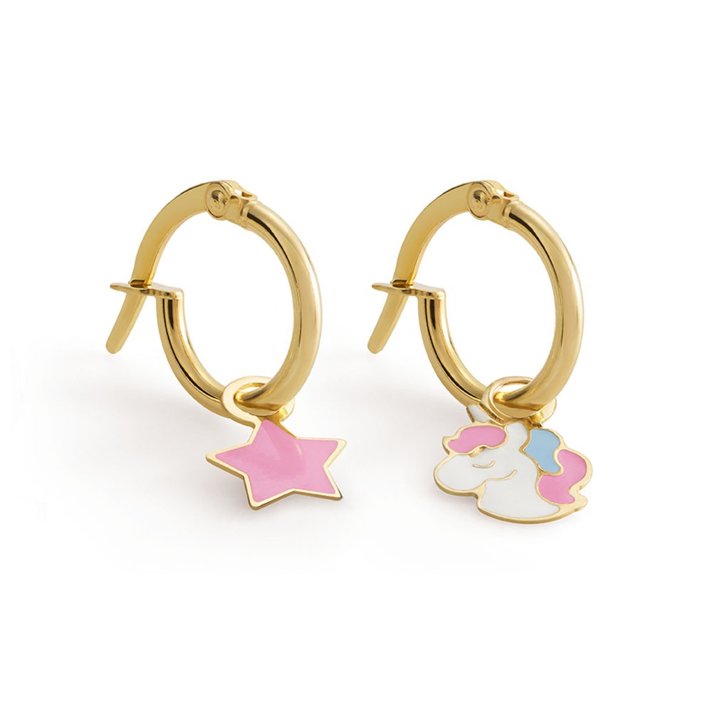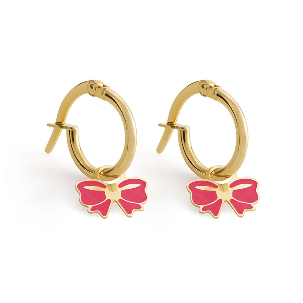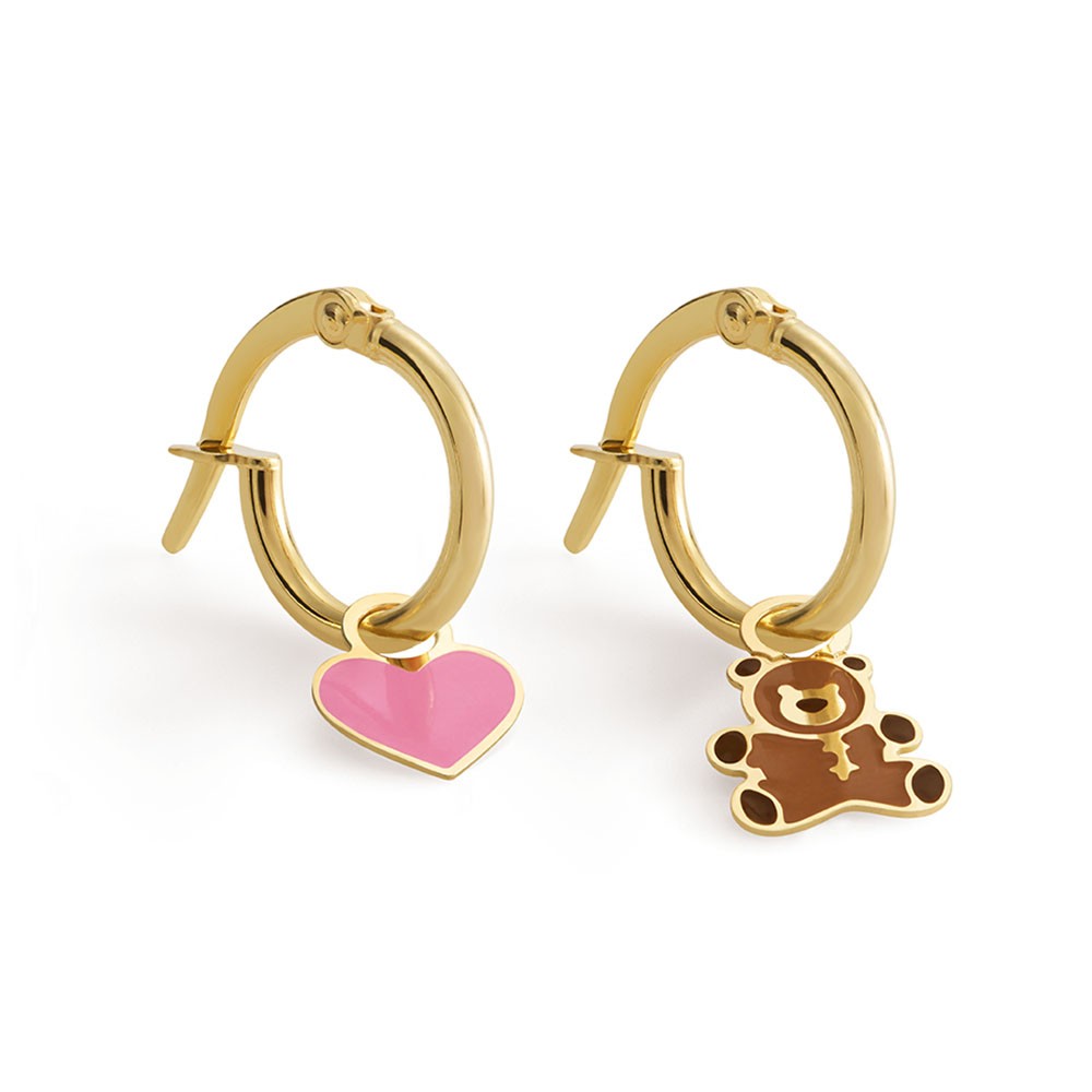 Orecchini da bambina con cerchietto in oro giallo pendenti con orsetto e cuore smaltati. Questi simpaticissimi orecchini in oro sono una perfetta idea regalo per il compleanno di una bambina, un battesimo, o una ricorrenza speciale come la prima comunione, il Natale o la Santa Pasqua. Le due sagome sono smaltate lo smalto colorato. Vengono consegnati con scatola e garanzia ufficiale del marchio. Referenza leBebe PMG057/C.