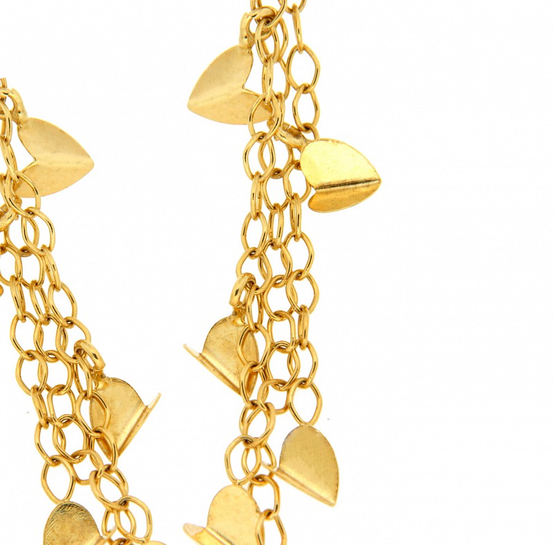 Orecchini pendenti oro giallo 18kt con cuori e catenelle