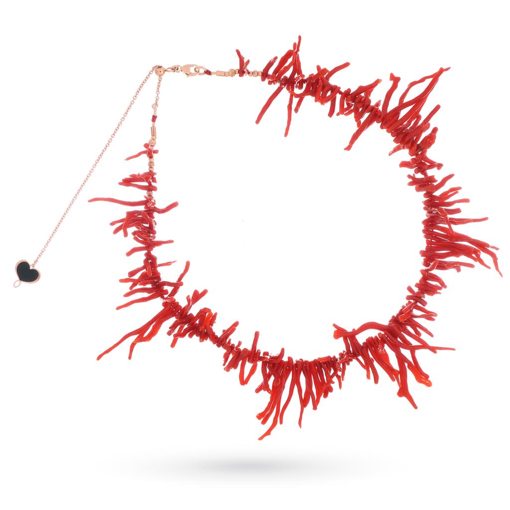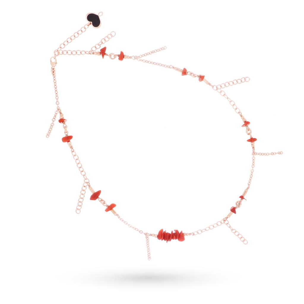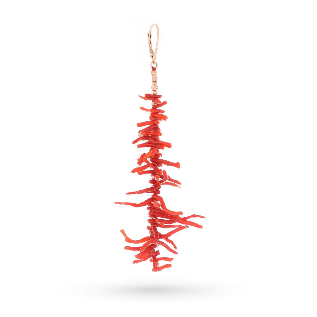 Orecchino lungo singolo a monachella con Coralli realizzato in argento 925 con galvanica oro rosa ad alto spessore e resistenza.
