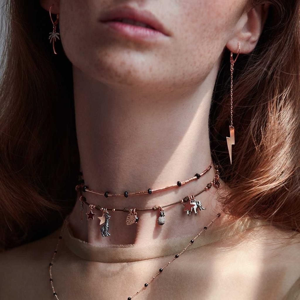 Orecchino singolo monachella palma argento 925 placcato oro rosa