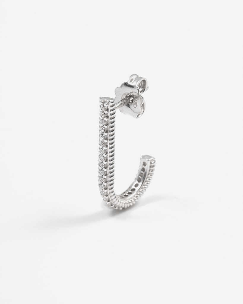 Il castone, dalle dimensioni di 2,5 x 2,5 mm, è progettato per valorizzare il brillante senza rinunciare alla discrezione e all’eleganza. La chiusura a perno e farfallina, solida e pratica, assicura una vestibilità stabile, rendendo l’orecchino perfetto sia come orecchino singolo che come piercing.