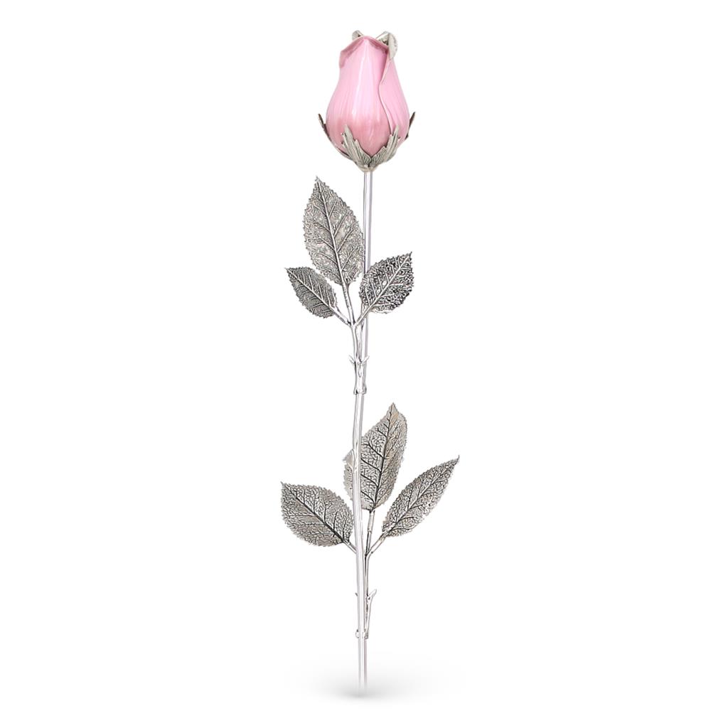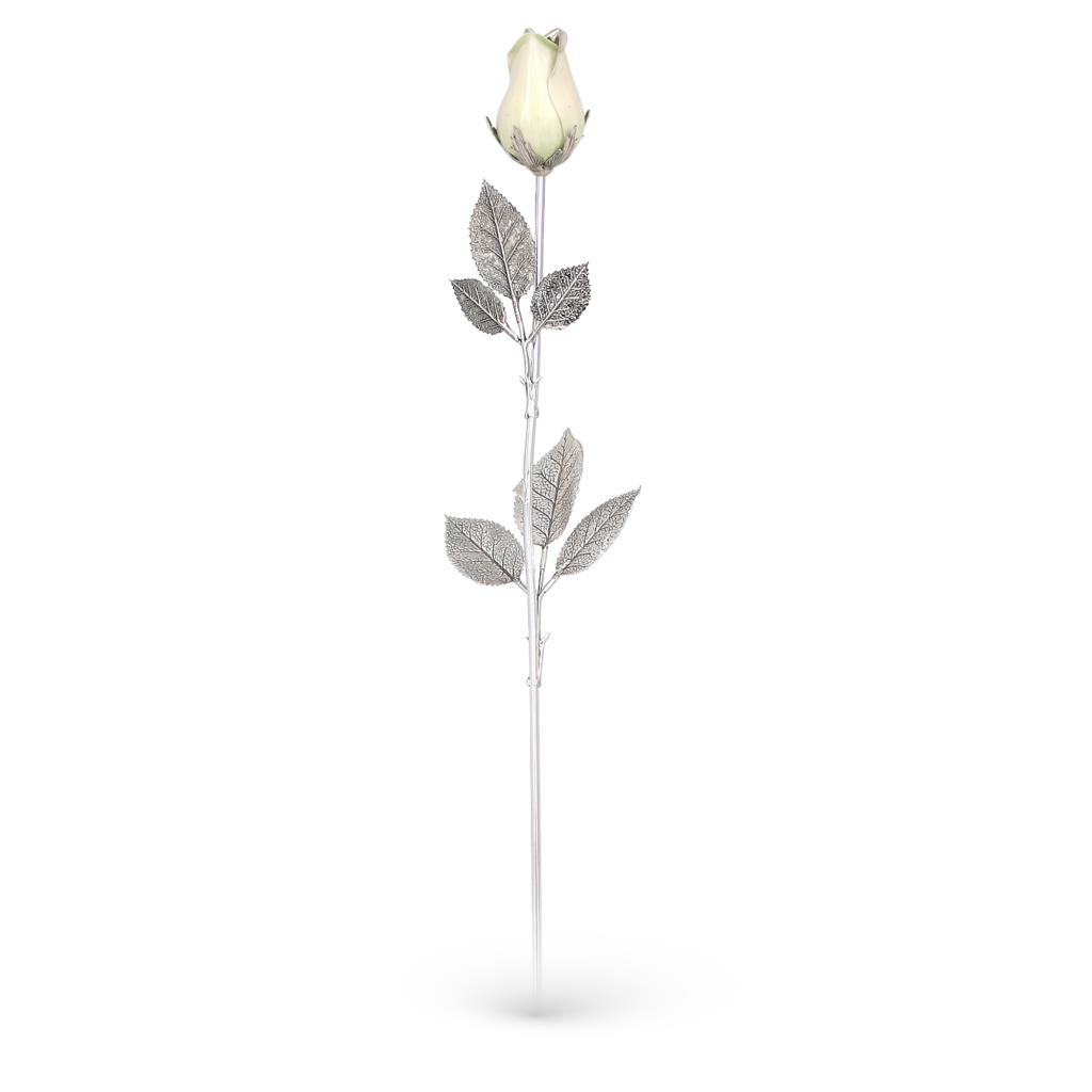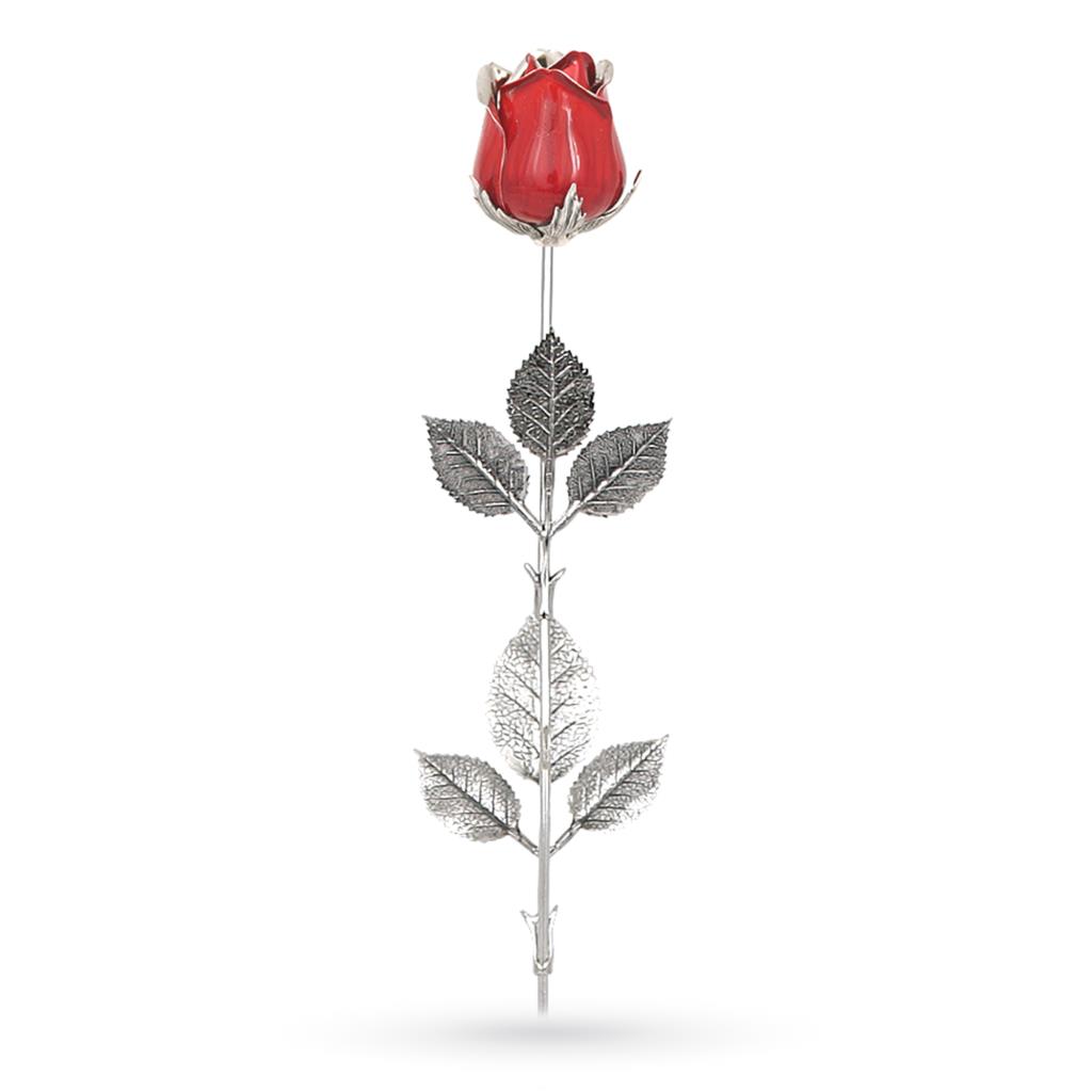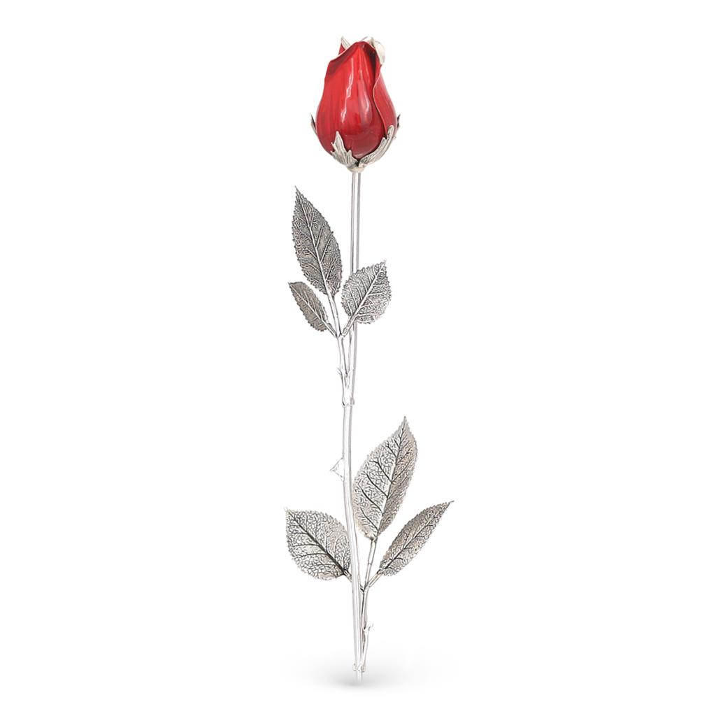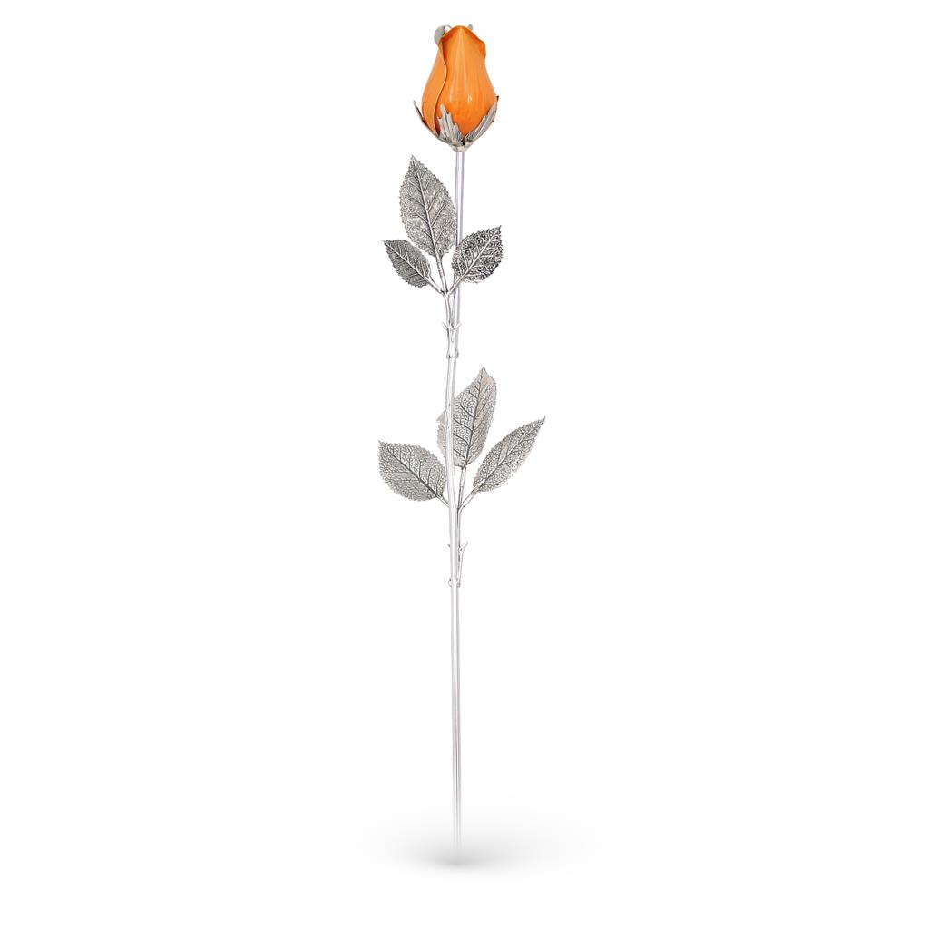 Questa rosa è interamente in argento 925, dipinta a mano con smalto colorato arancione e presenta la lunghezza del gambo di 48cm.