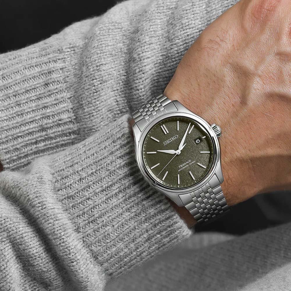 Il Presage Classic Series SPB465J1 è animato dal calibro 6R55, un nuovo calibro della famiglia di movimenti 6R che offre una riserva di carica di 72 ore. Il quadrante curvo e ricco di texture esprime la morbidezza e la flessuosità della seta, il cui uso è intimamente legato alla cultura giapponese. La cassa è curva e il vetro zaffiro a doppia curvatura riprende i contorni del quadrante bombato. Un nuovo bracciale a più file, il cui design si ispira agli anni '70, offre una sensazione di eleganza e comfort al polso. Questo orologio è una scelta perfetta come idea regalo per Natale, per un amico o per il proprio partner.