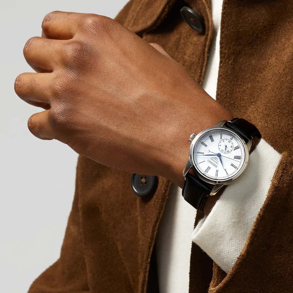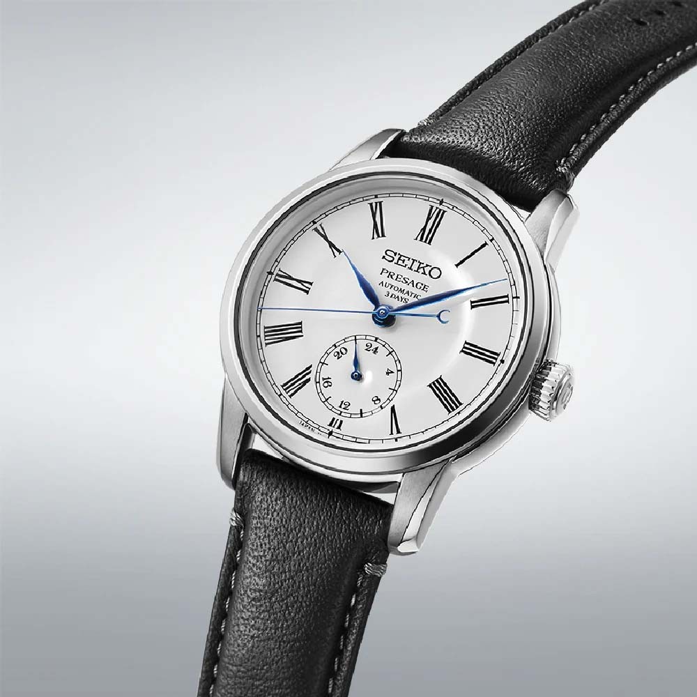 Questo elegante orologio da polso con quadrante smaltato rende omaggio a una delle prime creazioni più importanti di Seiko: il primo orologio da tasca dell'azienda, il Timekeeper del 1895.
