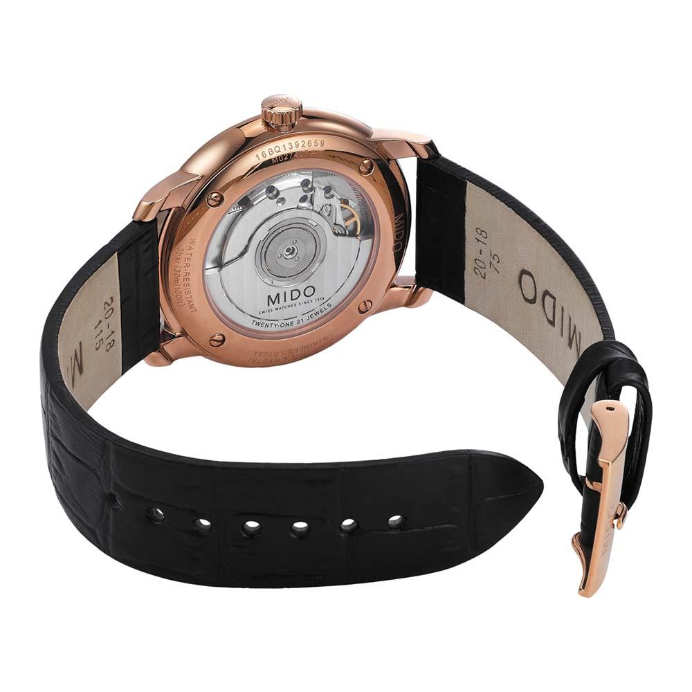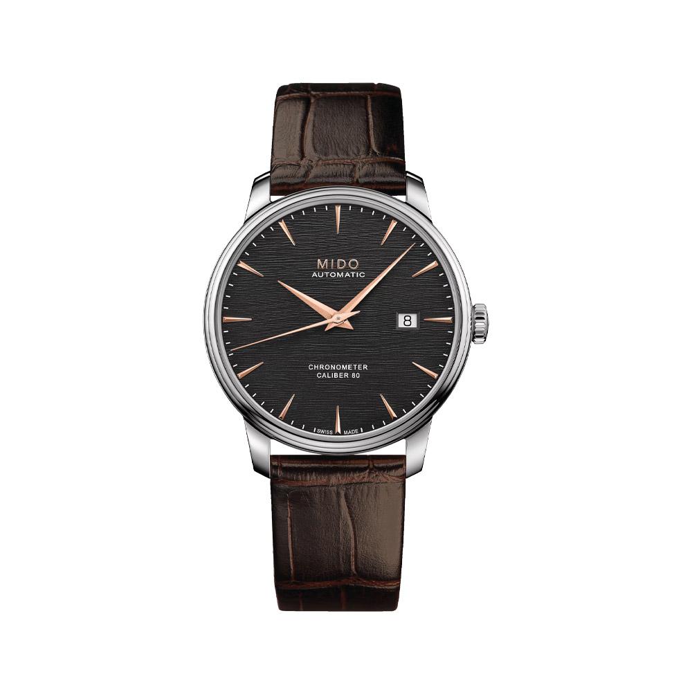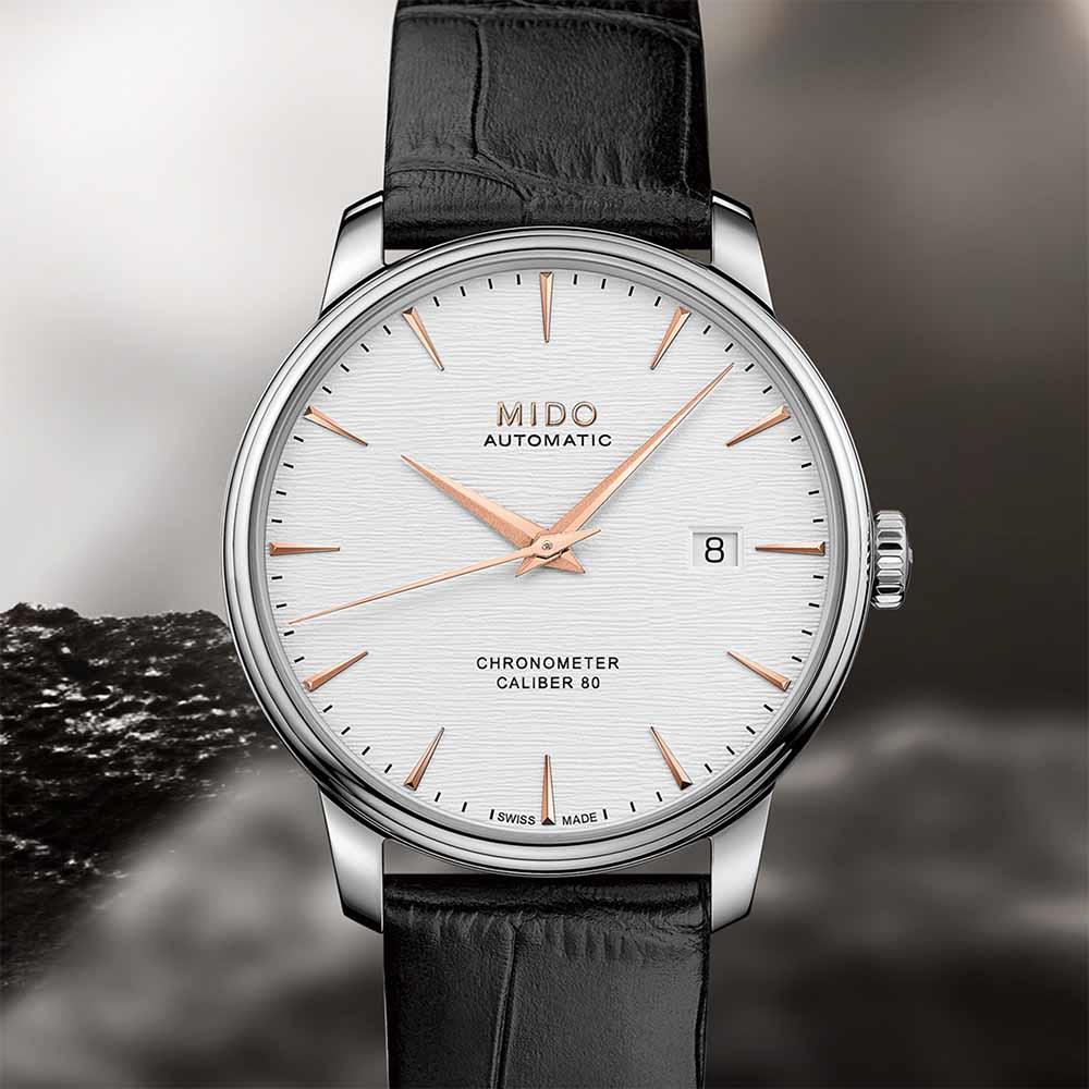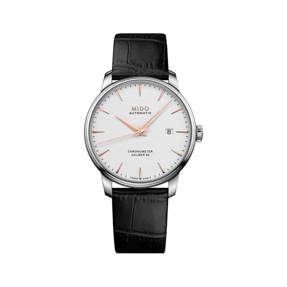 Il cinturino in pelle bovina nera certificato dal Leather Working Group* accentua la bellezza classica dello smalto bianco e della cassa in acciaio.