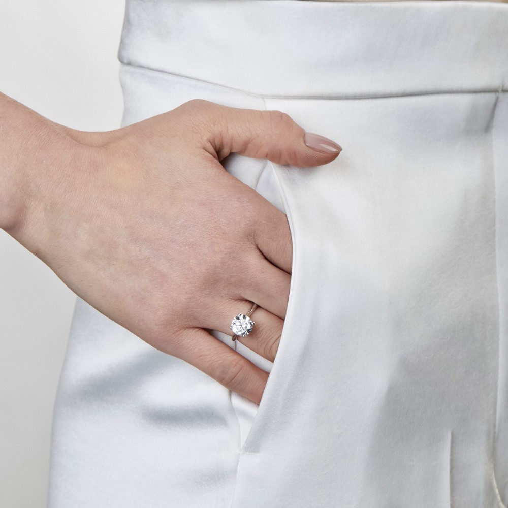 Questo anello realizzato in oro bianco riciclato 18 carati (750/000) incastona 1 diamante AMA taglio brillante. I diamanti AMA sono diamanti creati in laboratorio che replicano le condizioni naturali di formazione dei diamanti, offrendo le stesse caratteristiche fisiche e chimiche dei diamanti estratti dalle miniere. Questi diamanti, certificati da enti riconosciuti come IGI e GIA, garantiscono una brillantezza e una purezza eccezionali, senza gli impatti ambientali e sociali negativi associati all'estrazione mineraria. Questi diamanti prendono anche il nome di Diamanti Lab-Grown (ossia creati per accrescimento in laboratorio), e sono veri diamanti a tutti gli effetti.