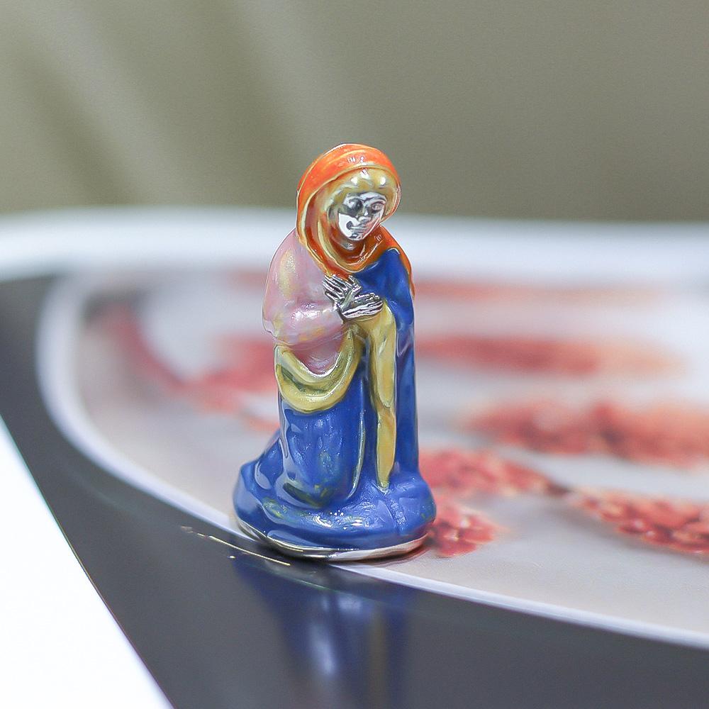 Soprammobile Presepe statuine argento 925 smalto. Questo soprammobile artigianale è realizzato in argento 925 dal brand manifatturiero italiano Saturno. La particolarità è l'esclusiva manifattura: ogni oggetto è sempre creato a mano con incredibile maestria... Il risultato è una piccola miniatura realistica del soggetto ritratto! La superficie è abbellita da magici smalti colorati applicati a mano. La creazione è spedita con il suo packaging (scatola e garanzia) e accuratamente impacchettata con carta regalo e fiocco firmati Cicala. Referenza Saturno ST890.