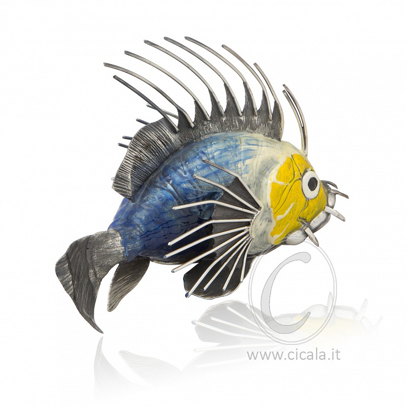 E' realizzato interamente a mano sia per quanto riguarda la struttura del pesce, sia per quanto riguarda gli smalti, rigorosamente applicati a mano. E' un oggetto da arredamento di lusso perfetto per gli amanti del mare. Podotto Made in Italy